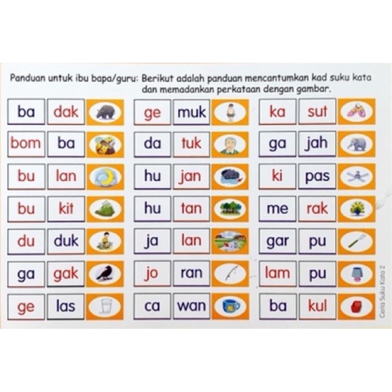 Buy 009 Pdf Belajar Suku Kata Prasekolah Tadika Learn Suku Kata Malay Word Reading Kindergarten Belajar Bahasa Melayu Seetracker Malaysia from cf.shopee.com.my Kad suku kata untuk prasekolah. Check spelling or type a new query. Maybe you would like to learn more about one of these? We did not find results for: